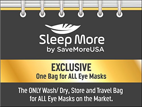 Ahhh! a perfect sleep mask care solution! instantly works with all and any sleeping masks . You, the eye mask buyer were the actual focal point when we designed the "one bag for all eye masks". Sleep more read thousands of reviews and questions concerning the customers of the sleep mask industry. And with your thoughts in mind the one bag was created. Sleep masks provide a proven alternative to promoting rest naturally. The one bag is a solution that works for all eye masks anywhere and at any time, including: washing for one strap, Velcro strapped, with or without ear plugs, drying in a machine or left to dry naturally, storing in a nightstand, desk, vehicle, computer or suit case, travelling our breathable bag is idea for trains, plains and automobiles. Trust the sleep more one bag to make your sleep masks cleaner and healthier for you and your family. Order your sleep mask today as a unique gift idea for yourself or someone you know to ensure you have the best sleep mask total care.Feature