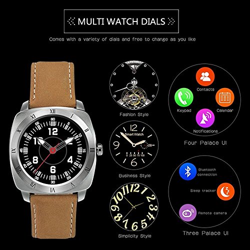 -. Feature : Take care of yourself: Accurately view your heart rate and track your steps taken, sleeping hours, and calories burned all day,7*24 hours / Elegant and luxurious business Suitable for Gentleman and lady / Lightweight and durable stainless water resistant, it's so high quality / High-tech remote camera, heart rate monitor, Siri, Whatsapp, Gmail, Facebook, WeChat / It can synchronize with the phone Bluetooth refused to complex of phone card slots