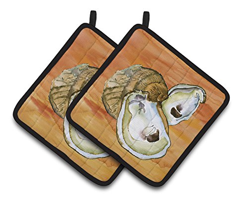 Caroline's Treasures Oyster Pair of Pot Holders 8142PTHD, 7.5HX7.5W, Multicolor