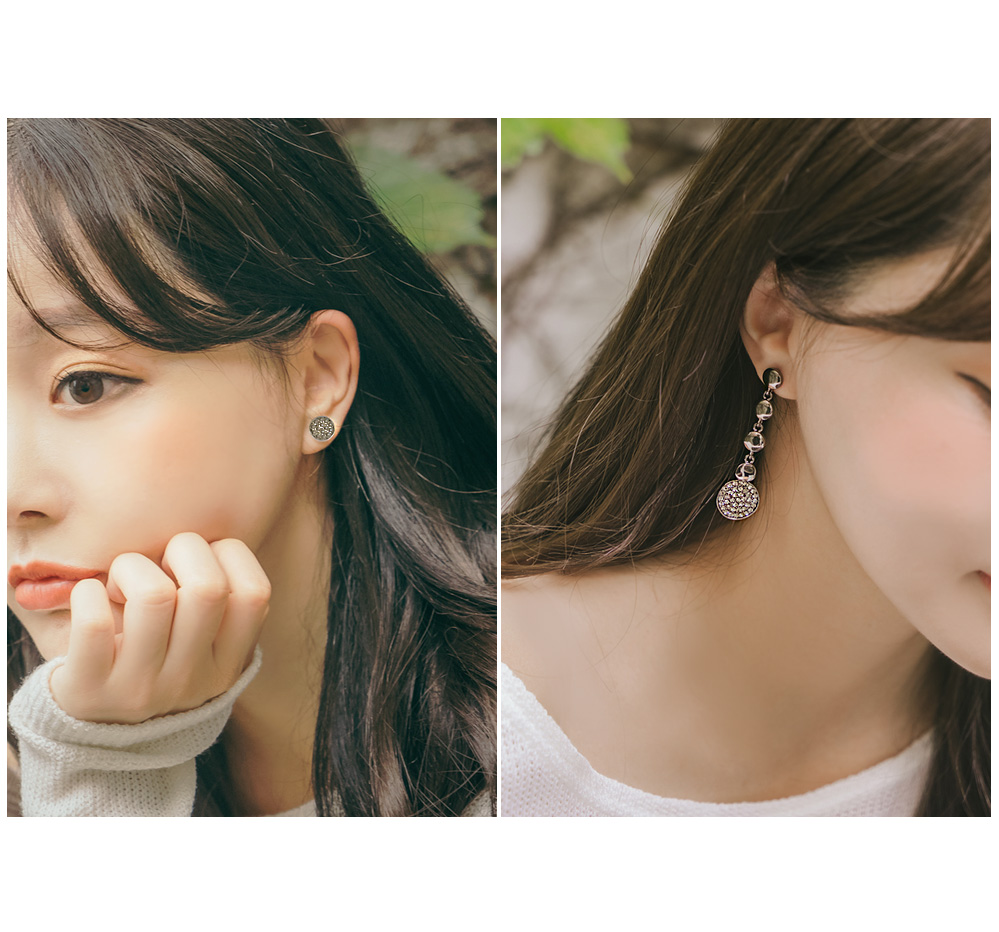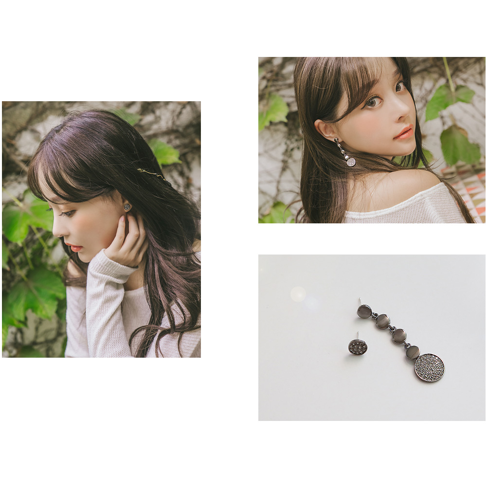 미니멀한 라운드 이어링과 롱이어링이 함께 구성된