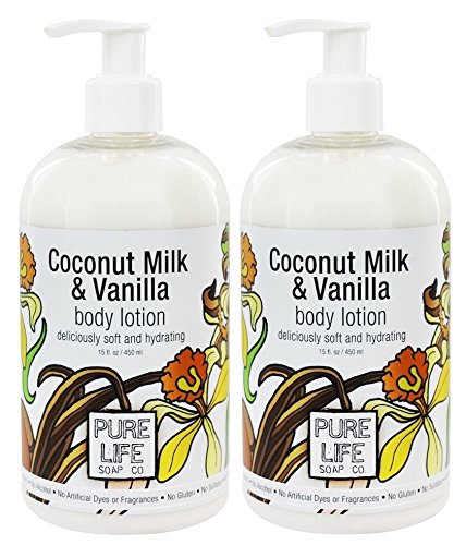 Pure Life Soap Co Coconut Milk and Vanilla Body Lotion (Pack of 2) With Sunflower Oil, Aloe Leaf Extract and Vitamin E, 15 fl oz Each