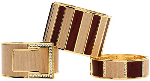 -. Title : Lova Jewelry Brown Wood Texture Crystal Gold Tone Hinge Metal Bangle Bracelets (Set of 3)