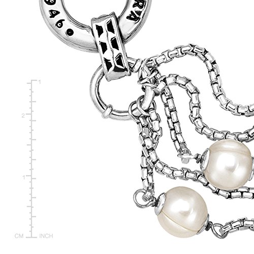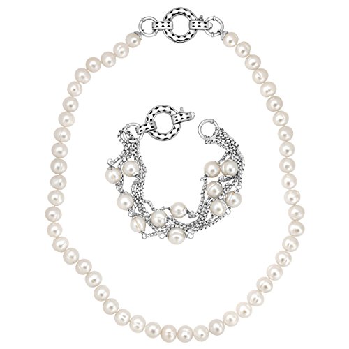 A multifunctional piece of cultured pearl jewelry that can be worn as either a necklace or bracelet in three different ways! 8-9 mm ringed freshwater cultured pearls are interspersed on several rows of a sterling silver box chain, suspended from a single cultured pearl strand. Necklace measures 18 inches in length. Bracelet measures 8 inches in length. Pieces measure 26 inches in length when worn together. Pearls have been coated to enhance their appearance.Feature