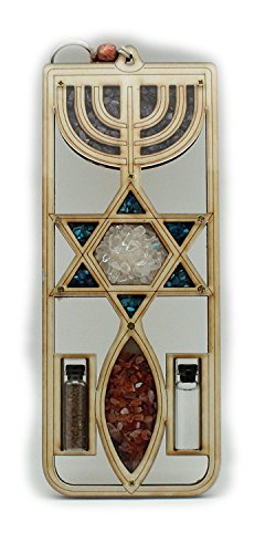 Large Wooden Jewish Decorative Plaque - Star of David with Simulated Gemstone...