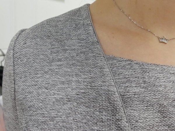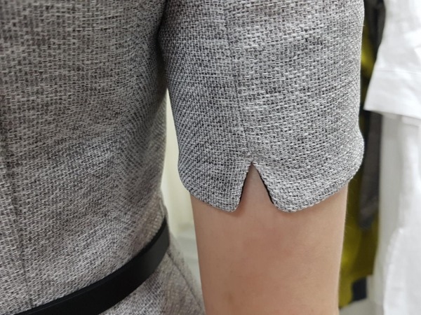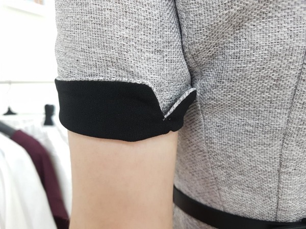 36인치 기장의 V넥 배색 원피스 입니다.여름성 트위드 소재로 고급스러우며, 허리 라인이 들어간 정장 원피스 입니다.브이넥 안쪽에는 배색을 덧대어 여성스럽고 고급스러운 상품이며, 소매는 롤업하여입을 수 있는 디자인 입니다. 옵션으로 허리 벨트가 들어가 포인로 착용하기 좋고허리가 잘록해 보이는 효과도 있습니다.