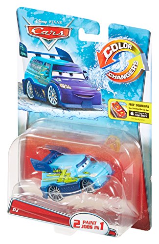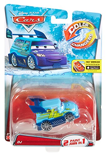 -. Binding : Toy -. Brand : Disney -. EAN : 0027084916836 -. Feature : Create your own custom paint job with your favorite character from Disney/Pixar Cars. / This 1:55th scale vehicle changes colors from purple when dipped in cold to light blue in warm water. / Splash, dip, and dunk your way to a whole new look. / Look for other color change cars (sold separately) to expand your fleet. / Packaging may vary. -. IsAdultProduct : 0 -. Label : Mattel -. Manufacturer : Mattel -. Model : T5641 -. MPN : T5641 -. PackageQuantity : 1 -. PartNumber : T5641 -. ProductGroup : Toy -. ProductTypeName : TOYS_AND_GAMES -. Publisher : Mattel -. Studio : Mattel -. Title : Disney/Pixar Cars, Color Changers, DJ (Purple to Light Blue) Vehicle -. UPC : 027084916836 -. Warranty : 1 year warranty against manufacturer defects
