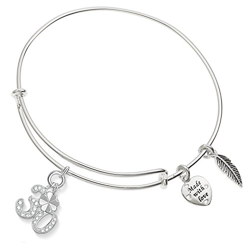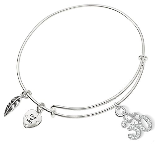 Enni of York Lucky Crystal Number 30 With Four Leaf Clover Charm Expandable Bangle Bracelet
