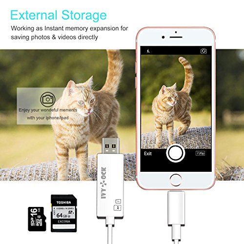 🍎 EXTERNAL STORAGE FOR IPHONE - Simply taking more photos and videos. No worries about your iphone/ipad/ filled up with pictures and videos any more. You can shoot picture and video via the app "iUSB Pro" from App Store and save them to your SD TF card simultaneously. (The SD/TF card no included)