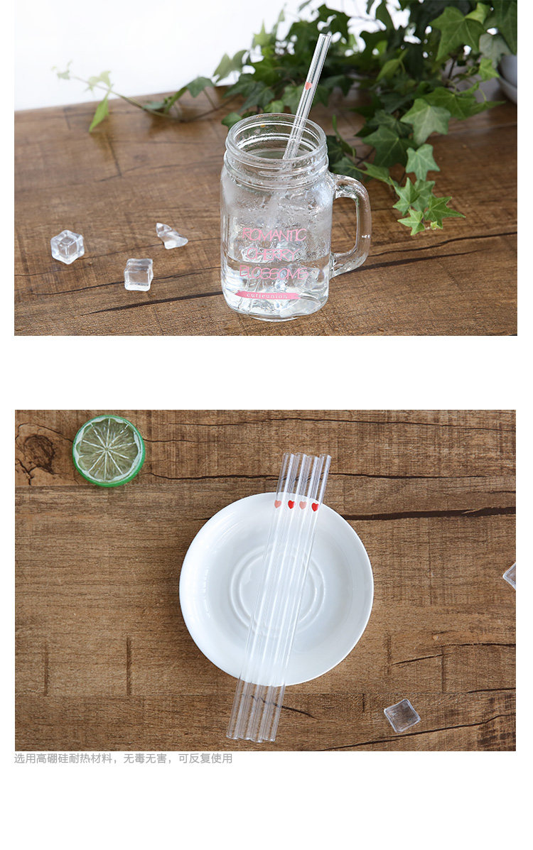 高硼硅爱心透明吸管健康环保无铅玻璃吸管耐高温饮料吸管