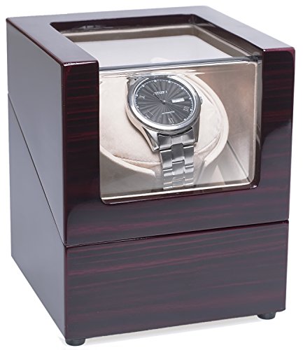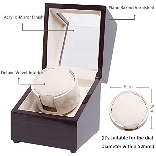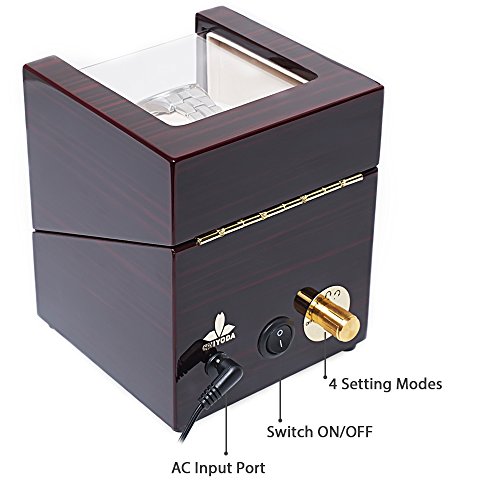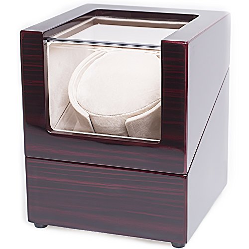 The Machine Watch winders feature a small Japanese motor powered by a battery or AC power outlet to rotate a pedestal that holds the watch. Watch winders function much the same way as the wrist by rotating the watch in various directions to keep it running. Vertical design helps save space and looks great in the bedroom or office. Piano baking varnish appearance and Acrylic organic glass for display deluxe watches. Strong and durable, not easy to crack and will not break, can effectively prevent scratch, high transparency and good safety