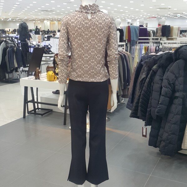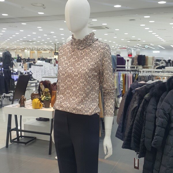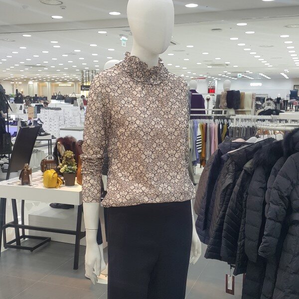 전체핑크바탕에 검정레이스가 포인트되는티셔츠입니다네크라인가소매가고무밴딩스모크처리되어 여성스러움을강조해주며 전체스판있는소재라 티셔츠처럼편하게입고 블라우스분위기로연출하기좋은아이템입니다매장인기아이템입니다