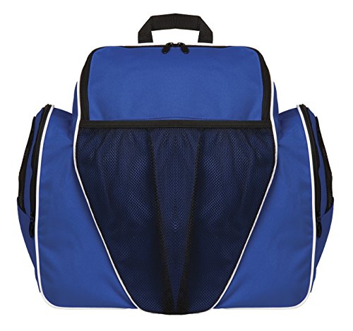 -. Feature : Made of 600-denier polyester with plastic backing. Top-loading main compartment with U-shaped zippered opening. Large front mesh pocket for a ball or additional storage. / Small inner pocket and key tab. Padded, adjustable back straps. Webbed loop carrying handle. / Textured plastic rubberized bottom. Dimensions: 1880".