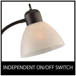Sleek Black-painted finish with a gently curved white-frosted plastic shade