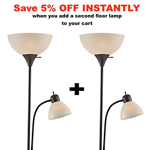 Light Accents SUSAN Floor Lamp 72" Tall - 150-Watt with Side Reading Light (Black)