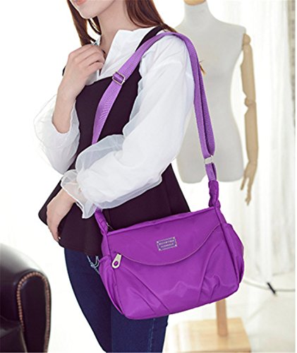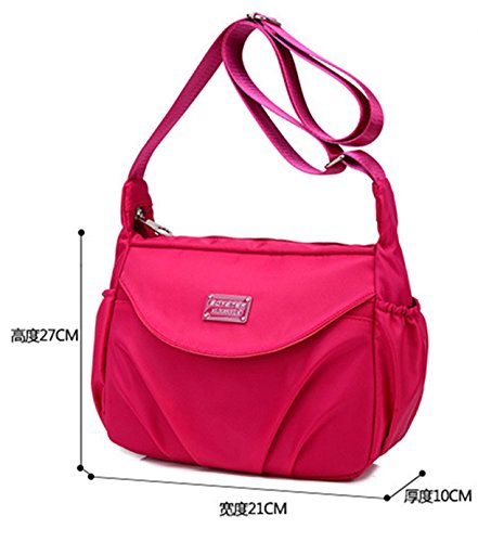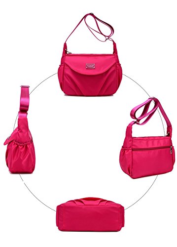 -. Feature : Size:8.3"(L)*3.9"(W)* 10.6"(H),Structure:Top Main zipper compartment,1 front outer zip pocket,1 back outer zipper pocket,2 side open pouches / Made of durable nylon and polyester fiber lining,which is durable,waterproof and lightweight. / Women's nylon shoulder bags,big capacity for daily use carrying iPad,cell phones,wallet,cosmetics,bottles,umbrella,book,etc. / Single shoulder and cross body carrying with the adjustable strap / Casual,Work,Travel,School,Shopping,Fashion,Gym,Hiking for Women