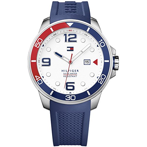 -. Binding : Watch -. Brand : Tommy Hilfiger -. Color : white -. Department : mens -. EAN : 7613272175678 -. Feature : Water Resistance : 5 ATM / 50 meters / 165 feet / Date / Blue Rubber Strap / Round Stainless Steel Case -. Label : Tommy Hilfiger -. Manufacturer : Tommy Hilfiger -. Model : 1791155 -. MPN : 1791155 -. PackageQuantity : 1 -. PartNumber : 1791155 -. ProductGroup : Watch -. ProductTypeName : WATCH -. Publisher : Tommy Hilfiger -. Studio : Tommy Hilfiger -. Title : Tommy Hilfiger Keith White Dial Blue Silicone Mens Watch 1791155