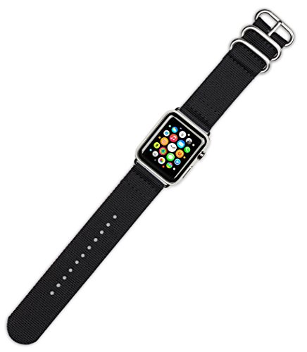 -. Title : deBeer 2 Piece Nylon Strap for Apple Watch Fits 38mm Series 1 & 2 -Black With Silver Adapters