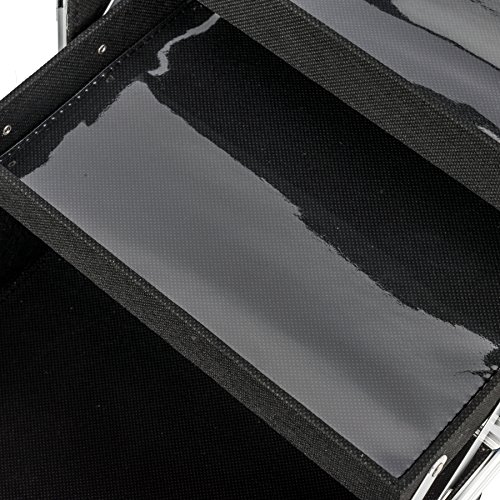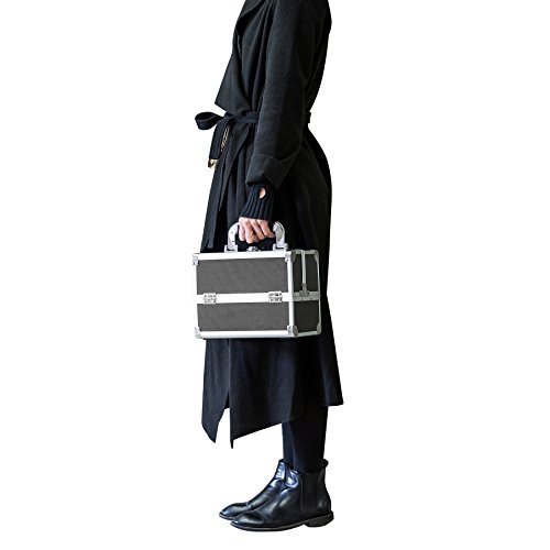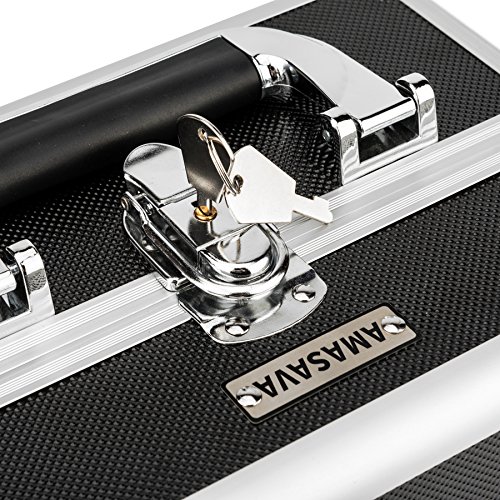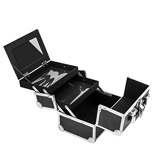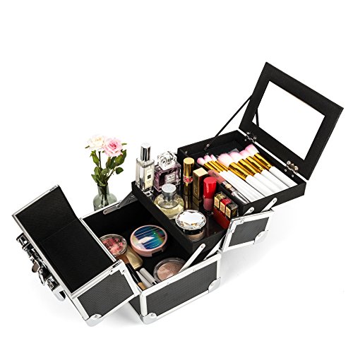 Amasava Makeup Case Organizer Mini Travel Cosmetic Storage Make Up Artist Box Aluminum Lockable With Mirror - Black