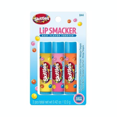 Enjoy your favorite Skittles mouth-watering candy flavors in a pocket-sized Lip Smacker. Ultra-moisturizing ingredients smooth lips while the great Skittles flavor creates a flavorful smile. Contains 1 of each: Banana Berry, Strawberry Starfruit, and Mango Tangelo. Collect them all!