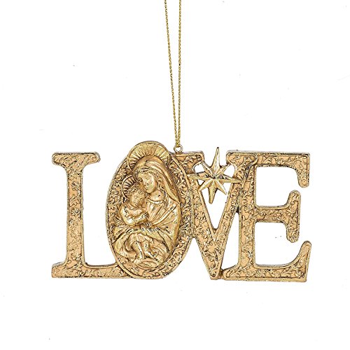 Love Madonna & Child Filigree Goldtone 4 x 2.5 Inch Resin Christmas Ornament
