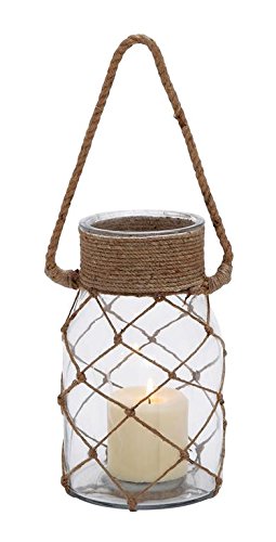 -. Title : Deco 79 28856 Glass Rope Candle Lantern 6"W, 10"H -