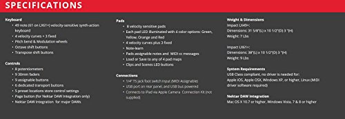 Item Weight:7 pounds Product Dimensions:32 x 10.5 x 3 inches Shipping Weight:9.2 pounds (View shipping rates and policies) Domestic Shipping:Currently, item can be shipped only within the U.S. and to APO/FPO addresses. For APO/FPO shipments, please check with the manufacturer regarding warranty and support issues. International Shipping:This item can be shipped to select countries outside of the U.S. Learn More ASIN:B01HZWL64O Item model number:Impact LX49+ Customer Reviews:4.5 out of 5 stars 37 customer reviews 4.5 out of 5 stars Best Sellers Rank:#6,202 in Musical Instruments (See Top 100 in Musical Instruments) #5 in Musical Instruments > Recording Equipment > Computer Recording > Digital Audio Workstation Controllers Date first listed on Amazon:July 20, 2016