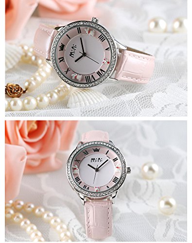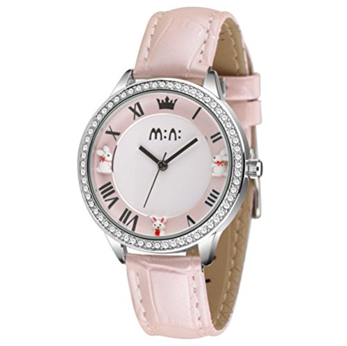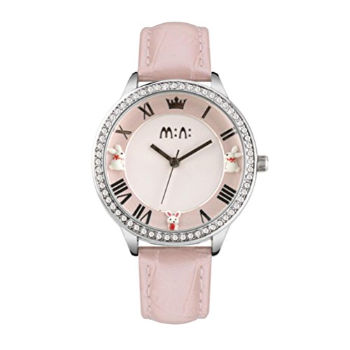 -. Title : Fq265 Crown Rabbits Design Calfskin Leather Strap Polymer Clay Womens Girls Wrist Watches Pink