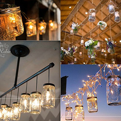 【Creative design】:Require no electricity, just simple sunlight to charge.The jar light includes a water-resistant solar cell with 10 bright LED bulbs, a glass jar. They can be used at home and garden for hanging lighting.Use more mason jar lights will make the garden or house more beautiful