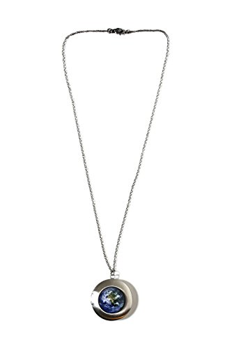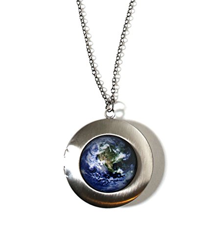 This bold antique tone locket necklace is a lovely statement piece. It measures 1 1/4" (3cm) in diameter and hangs on an 18". The front features Earth. Opens easily for you to store your own little treasures of the universe inside.Feature