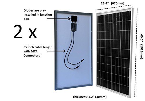 Complete kit includes: 2pcs 100 Watt WindyNation Solar Panels, 30-Amp (user adjustable) LCD Display P30L Solar Charge Controller with Battery Temperature Sensor, 40 feet of UL Listed 12 AWG Solar Cable, all necessary MC4 Connectors, all necessary mounting hardware and Installation Manual.