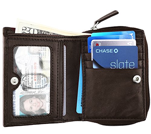 -. Feature : Top quality Genuine cowhide leather, NO SURP.R.ISES, NO DISAPPOINTMENTS,handmade by the finest craftsmanship. / Zipper closure / 6 Credit card slots, ID window,Zippered coin pockets, Another zippered pocket within the bigger pocket for extra safety,2 dollar compartment's,Roomy enough for fitting plenty of cards, change and bills, Coins, keep them well organized / RFID Blocking Wallet: Keeps your vital information Secure. BE SAFE and Effective, Protect Identity Data from Electronic Pick pocketing; Blocking RFID scanners and readers from Scanning your Information. / Size : 4.25" X 3.50"