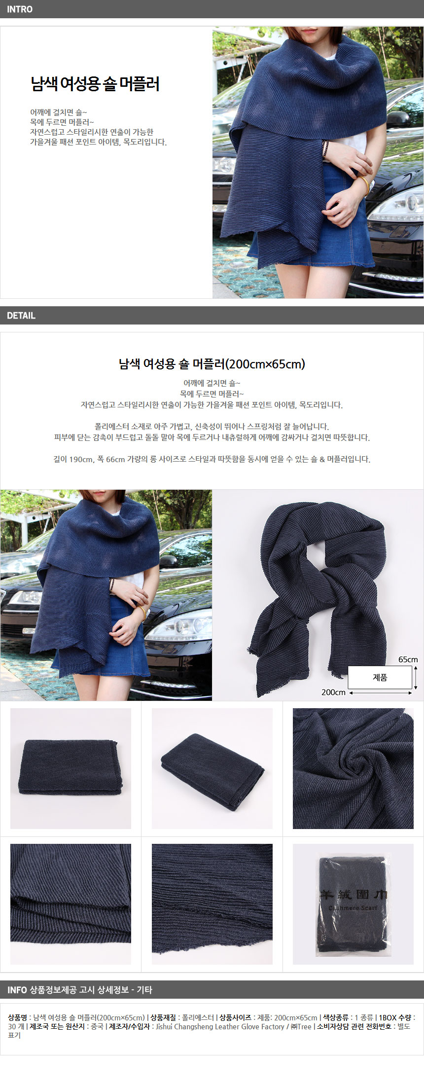 Winter Ladies Shawl Muffler 190cm × 66cm Shawl Fashion Item Navy
