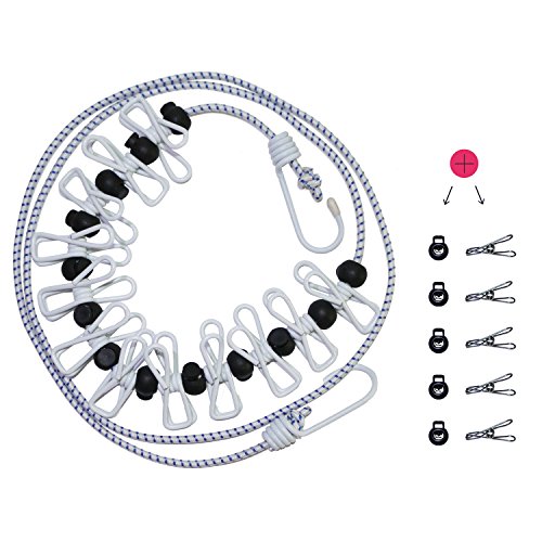 - Lightweight, portable. The rope is expandable/stretchable, can save a lot of space when not in use. And it only takes up very little space in your backpack, very easy to carry.Great for travel, camping, outdoorand indoor use. Can be drying a variety of clothing.
