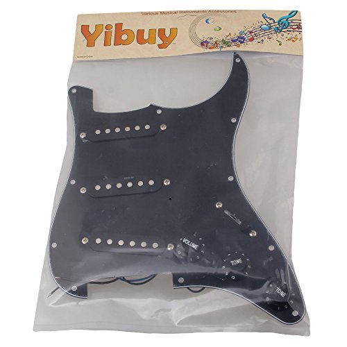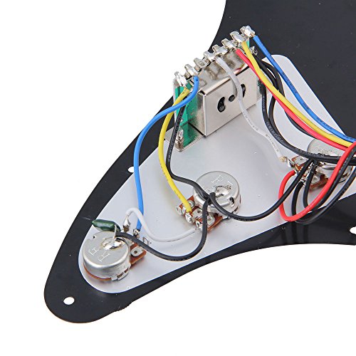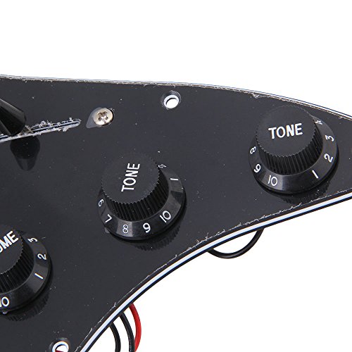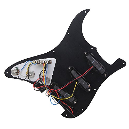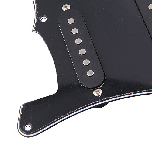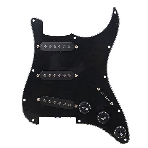 Studio : etfshop Publisher : etfshop Product Description Note: The color of the item may vary slightly due to photography and your own computer Feature: 3 single coil pickups for classic sound;3-ply 11 screw holes in the side Durable and practical,Good quality of Processing,smooth finish This is our stunning Arctic black pickguard assembly loaded with an awesome set of pickups. The switch is a 5 way switch and the wiring is one volume and 2 tone controls. Perfect replacement for electric Guitar All you have to do is solder the input jack and your ready to play! As with any pickguard,some modification may be necessary for exact hole alignment,as there are many different hole patterns. Specification: 3-ply 11 screw holes in the side Color:black Package Include: 1 x Guitar Loaded Pickguard 0