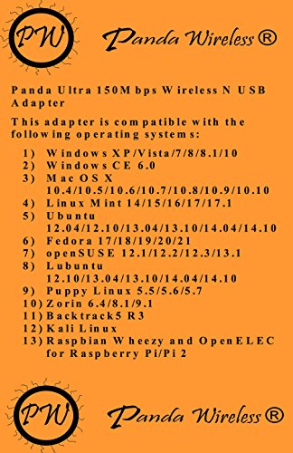 -. Title : Panda Ultra 150Mbps Wireless N USB Adapter - Windows XP/Vista/7/8/8.1/10, Windows Ce 6.0, Mac 10.4-10.10, Mint, Ubuntu, Fedora, openSUSE, Lubuntu, BackTrack5 R3, Kali Linux, Raspberry Pi/Pi 2