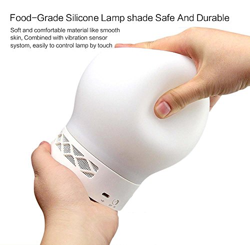 Meixx LED Bedside Lamp Wireless Speakers,Smart Color Changing Light with LED Bluetooth Speaker, Medical Silicone Multicolor Led Night Light Bulb and Outdoor Speaker,TF Card, 1000mA,USB (White)