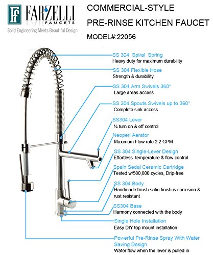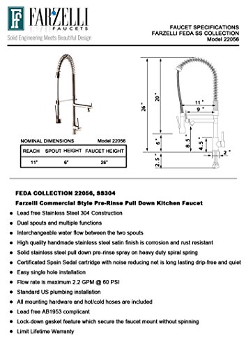 INSTALLATION & PACKAGE: Easy DIY One Hole Top Mount Installation. Including Stainless Steel 304 Braided Hot & Cold Water hoses , 3/8 Female Compression Connector, U.S Standard Size.Packing comes with CARE,INSTALLATION AND WARRANTY INFORMATION TOO.
