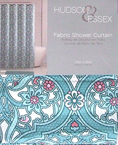 Mandi Aqua Green Embossed Fabric Shower Curtain: Contemporary Paisley Damask Design, 72 by 72 Inches