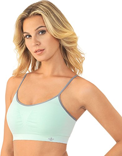 Seamless bralette provides removable pads provides shape and support for all sizes. Made of stretchy, comfortable fabric and adjustable straps make this bra great for casual, low impact activities. Includes two bras in package.