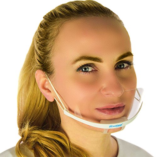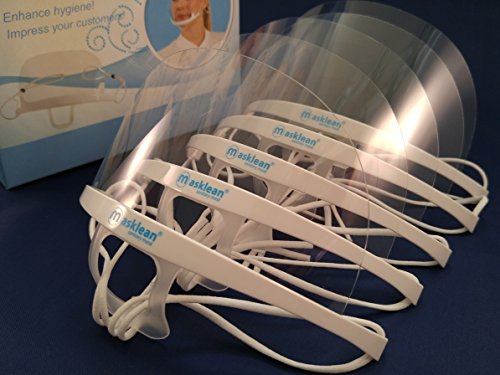 1 Box (5 Masks+1 Pouch) Masklean Clear Transparent Hygienic Sanitary Mask with "Permanent & Double Sided” Anti-Fog Shield, the Unique Feature of Masklean Spit Guard