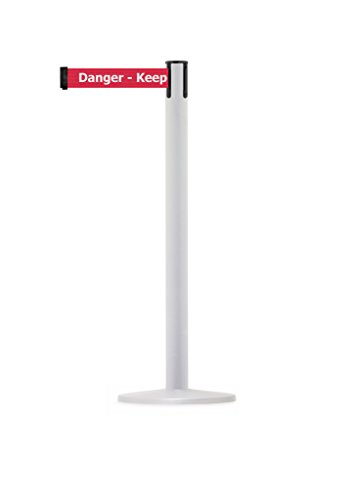 Tensabarrier 889U-32-32-MAX-NO-RHX-C - White Post, 2" Wide, 13' Length Red Danger Keep Out Belt , 38" Height, 2.5" Wide, 156" Length