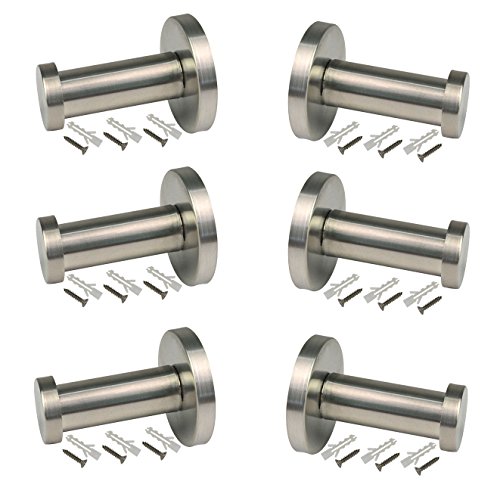 Brushed Stainless Steel Bath Towel Hooks, HOVEOX 6 Pcs Super Heavy Duty Wall Mounted Hook 2 Inch Single Clothes Hooks with18 Screws 0.8 Inch & a Free Screwdriver Fit for Home, Office, Hotel (Silver)