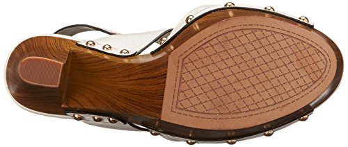 - Feature : Sandal featuring wood veneer-covered heel and platform, adjustable slingback strap, and round metallic studs at sides / Lightly padded footbed