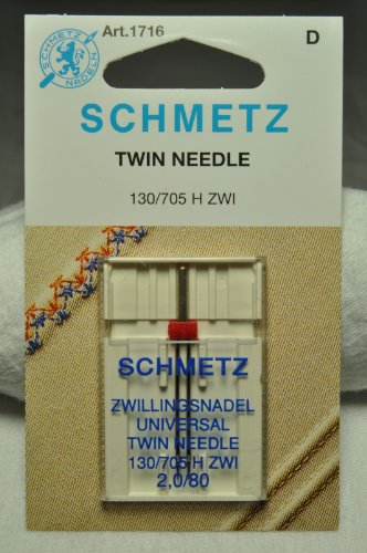 -. Binding : Kitchen -. Brand : Schmetz -. EAN : 0616469845337 -. Feature : Schmetz Sewing Machine Twin Needle SCHMETZ TWIN NEEDLE SZ 2.0/ 80 (1716) Description: Two Universal needles attached to a cross bar on asingle shaft allows for making two parallel rows ofstitching at the same time. Must be sused on a zigzag sewing machine. Create straight, zig zag ordecorative stiches. This space can vary form 1.6 upto 6mm between the two needles. Size:2.0/8 1716 / Sewing Machine Twin Needle -. Label : Schmetz -. Manufacturer : Schmetz -. ProductGroup : Home -. ProductTypeName : HOME -. Publisher : Schmetz -. Studio : Schmetz -. Title : Schmetz Sewing Machine Twin Needle -. UPC : 616469845337