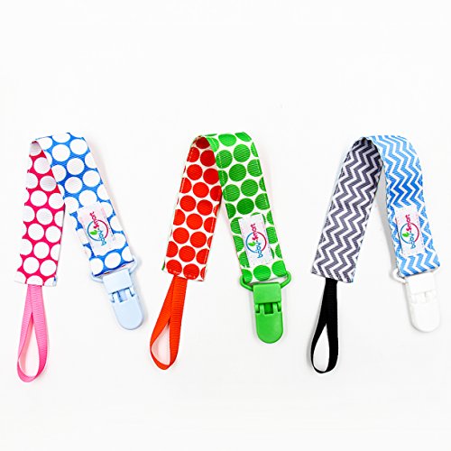 -. Title : Baby Pacifier Holder Clip - 3 Pack, Premium, Unisex Double Sided Designs, Rust Free and Safe Pacifier Clip, Works with Teething Ring, Soothie Pacifiers, Baby Shower Gift and Great for Baby Bibs