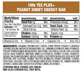 Studio : SCNS Sports Foods Publisher : SCNS Sports Foods Binding : Health and Beauty Product Description 10th Tee Plus Peanut Honey Bars 10th Tee Plus Peanut Honey Bars are formulated to prolong your game, whether it's through the back nine or crossing the finish line! Wrapped in a luscious vanilla yogurt coating, inside is an irresistible balance of peanuts, honey and peanut butter. Deliciousness is elevated with protein, green tea and panax ginseng extracts to help sustain energy no matter what the activity. 0