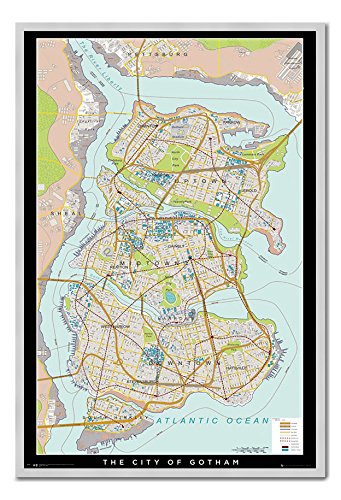 -. Title : Batan Begins Gotham City Map Poster Magnetic Notice Board Silver Framed - 96.5 x 66 cms (Approx 38 x 26 inches)