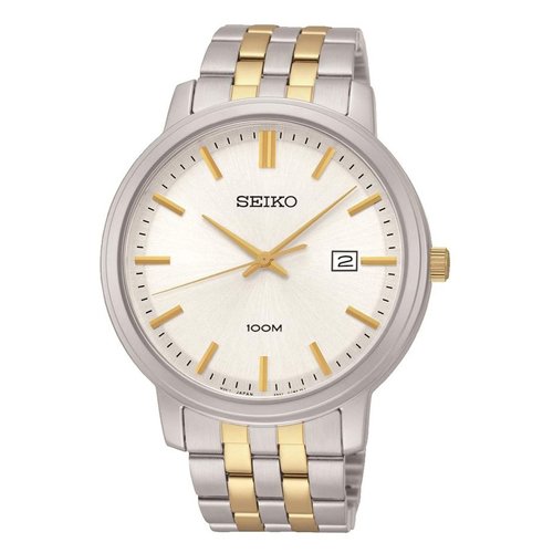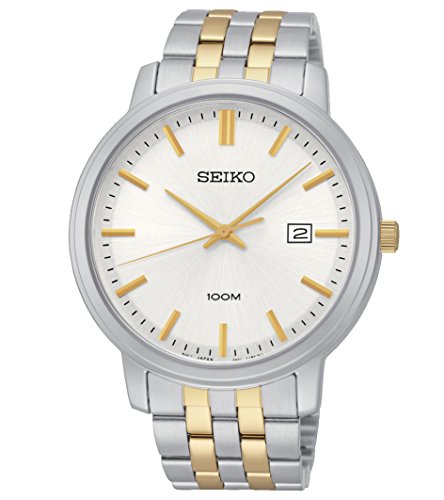 Seiko 남성용 시계.실버 스테인레스 케이스 와 실버 스테인레스 스트랩. 화이트다이얼.쿼츠 동작.양쪽으로 열림 원 푸쉬타입잠그개.방수 가공 100 미터.