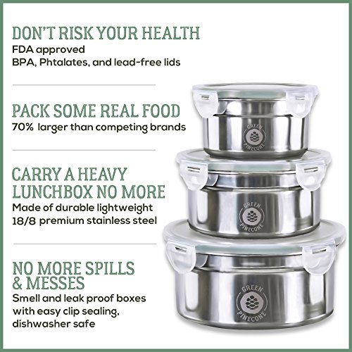 Make Your Life Easier With Green Pinecone's Designer Stainless Steel Container Set Another day of school and work for your family. You’ve got things to do! You’ve already done the daily mountains of homework, projects, dishes and chores. Give yourself a break and choose the set that's good to go. In addition, you'll receive the bonus eBook "Eating Healthy: Secrets to Looking Young and Feeling Fantastic", containing a wealth of healthy ideas. But that's not all. We've also included a portable 18/8 stainless steel juice squeezer, so you can make fresh juice anywhere. This is the perfect set for both adults and children: - Keeps food at the desired temperature ?bag acts like a thermos to keep temp for 4 hours