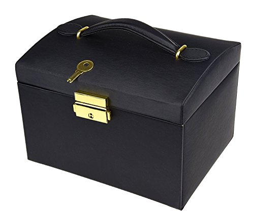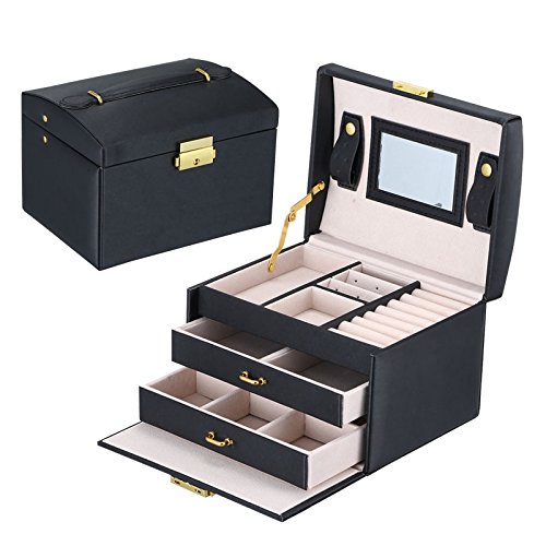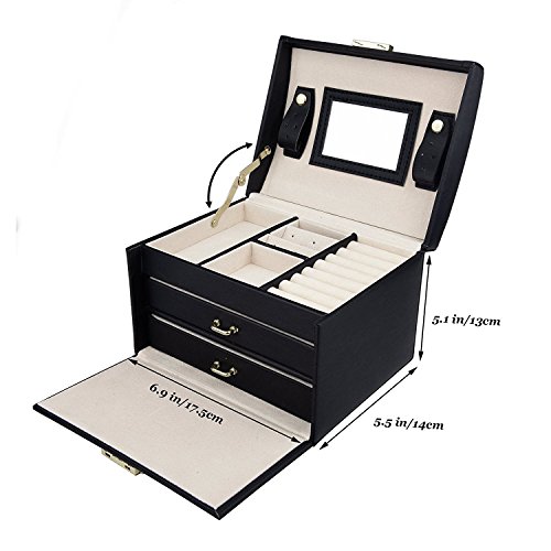 Beautiful stylish design for your accessories The jewelry box comes with a lock and key, keep your private treasure from from scratches and damage. The mirror on the top lid is large enough for your makeup.